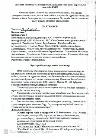 Абай облысы білім басқармасының Аягөз ауданы білім бөлімінің «Мектеп жанындағы интернаты бар жалпы орта білім беретін № 6 мектебі»