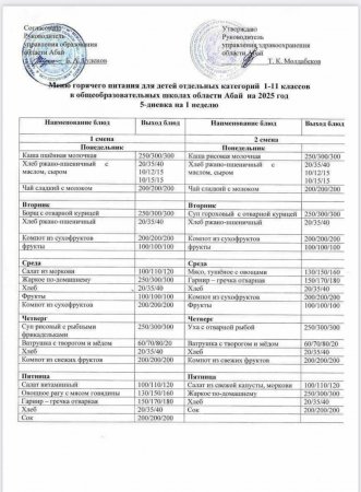 Ыстық тамақ мәзірі
