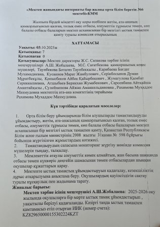 Абай облысы білім басқармасының Аягөз ауданы білім бөлімінің «Мектеп жанындағы интернаты бар жалпы орта білім беретін № 6 мектебі»