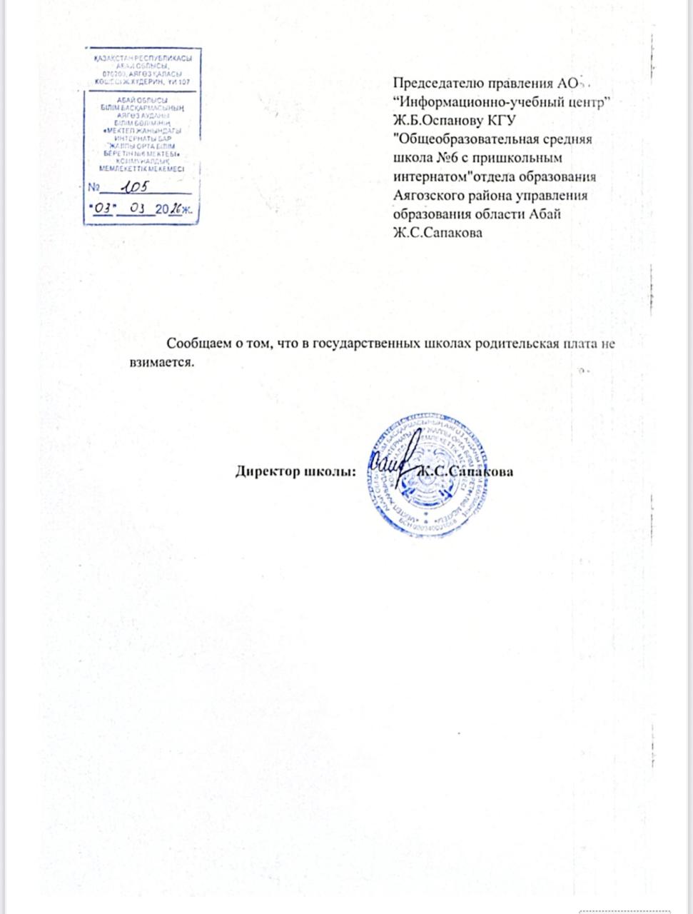 Абай облысы білім басқармасының Аягөз ауданы білім бөлімінің «Мектеп жанындағы интернаты бар жалпы орта білім беретін № 6 мектебі»