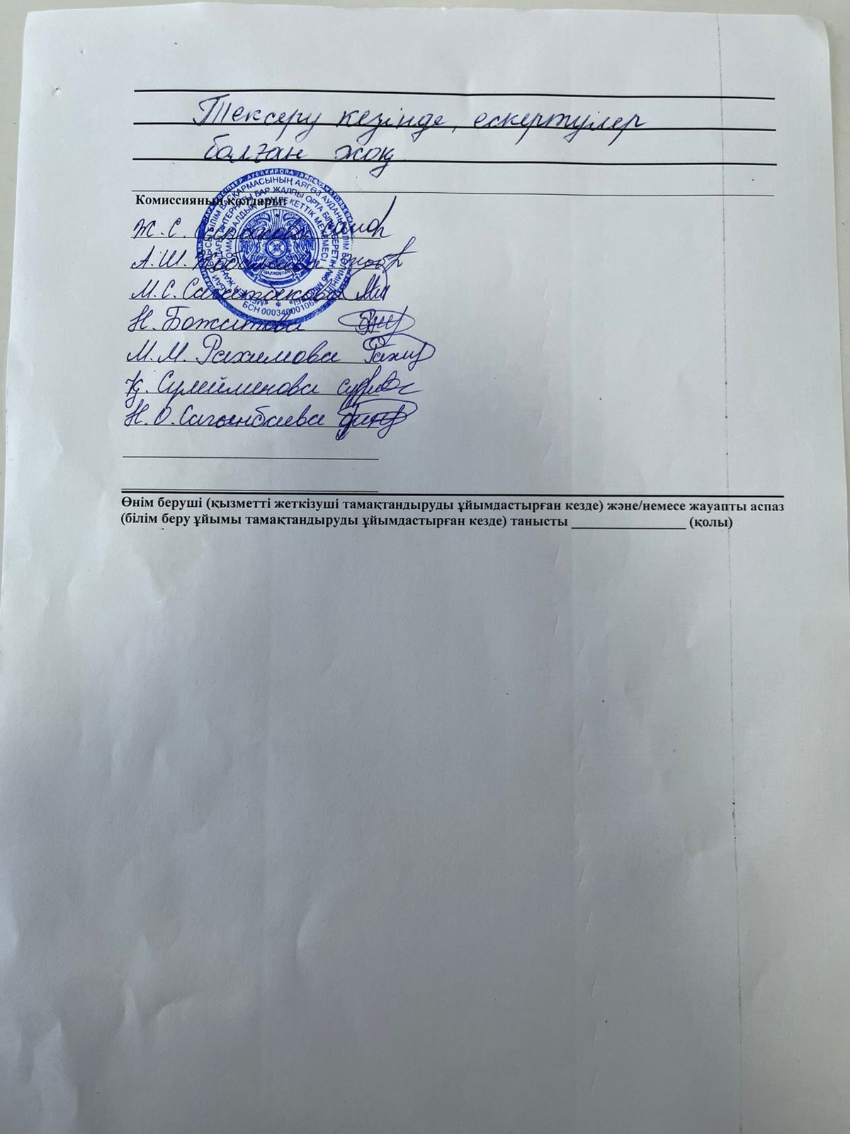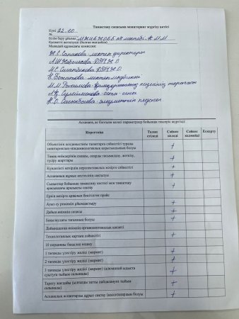 » Тамақтану сапасына мониторинг жүргізу актісі