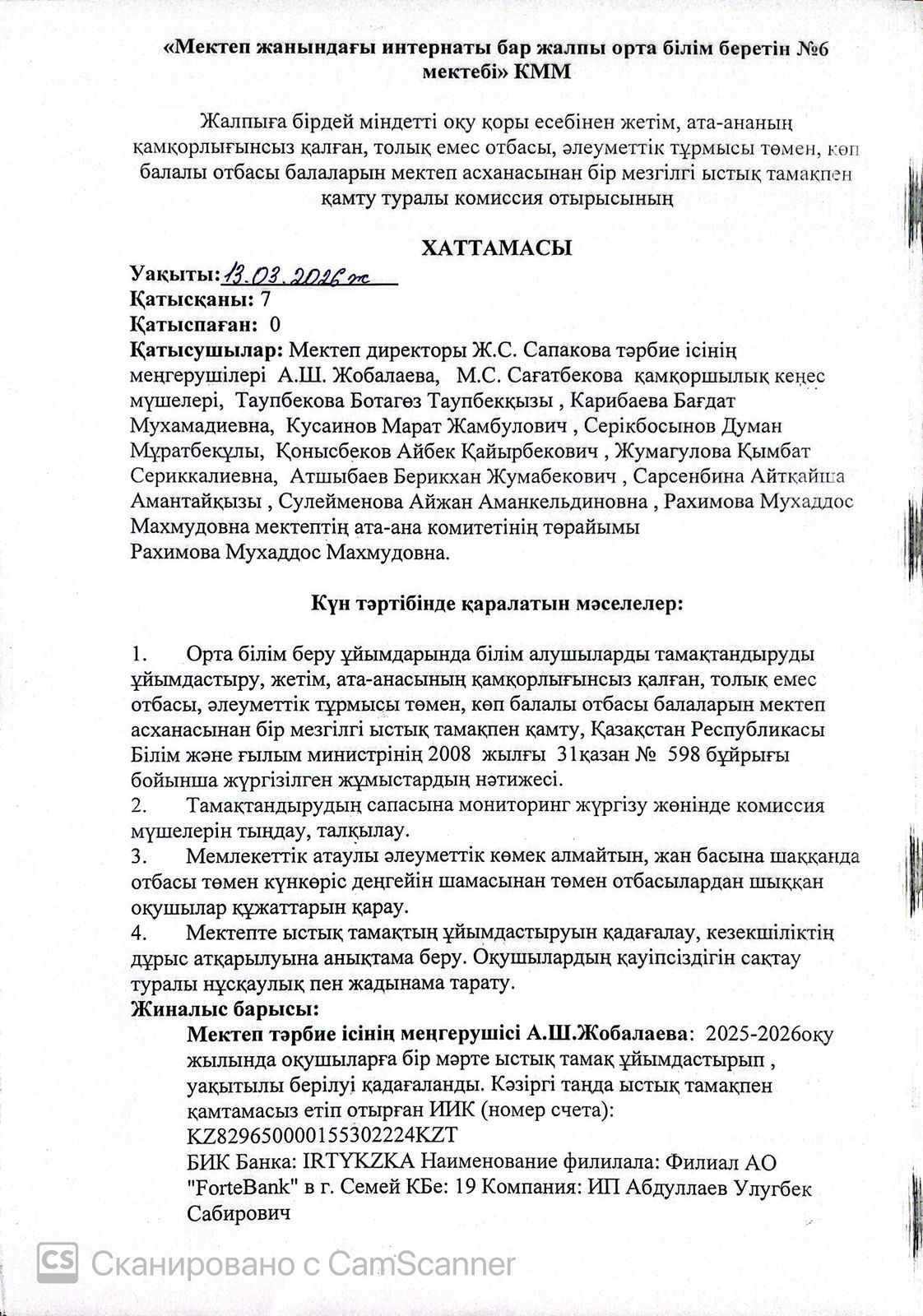 Абай облысы білім басқармасының Аягөз ауданы білім бөлімінің «Мектеп жанындағы интернаты бар жалпы орта білім беретін № 6 мектебі»