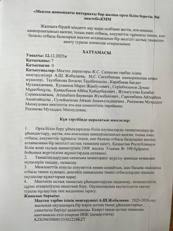 Абай облысы білім басқармасының Аягөз ауданы білім бөлімінің «Мектеп жанындағы интернаты бар жалпы орта білім беретін № 6 мектебі»